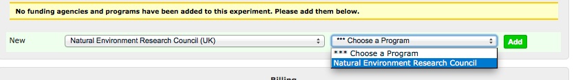 Once the Agency has been selected, the dropdown showing corresponding Programs will be updated dynamically. Select the appropriate program from the Programs dropdown, then click the Add button to add this sponsor. You may add multiple agencies/programs if there are several sponsors. If you cannot find the agency or program that is funding your project in the dropdowns, please mention it in the General Comments section at the bottom of the Request form.