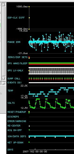 DSP-CLK DIFF shows adjustments made to the to the DSP clock. These adjustments should always be associated with a DSP SET. Three DSP SETS will occur after a power up or reset; if less than 3, there could be a problem with the timing. DSP SETS will also occur on 1 January and 1 July. DSP SETS at any other time may indicate a problem.
