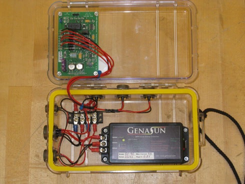 EPIC's Polar Group specifically designed a power management module to control the charging and manage the power system in extreme-cold temperature environments. There are two main parts in the power box: The solar charge controller and the power switcher. The solar charge controller, as the name implies, takes care of the proper and efficient charging of the batteries when solar energy is available. The power switcher takes care of switching from the rechargeable batteries to the primary batteries when the rechargeable batteries' voltage dips below a threshold, and switches from the primary batteries to the rechargeable batteries when the rechargeable batteries' voltage gets high enough from solar charging. Both the charge controller and the power switcher were tested successfully for operation at -55C after having been subjected to -70C for several hours.